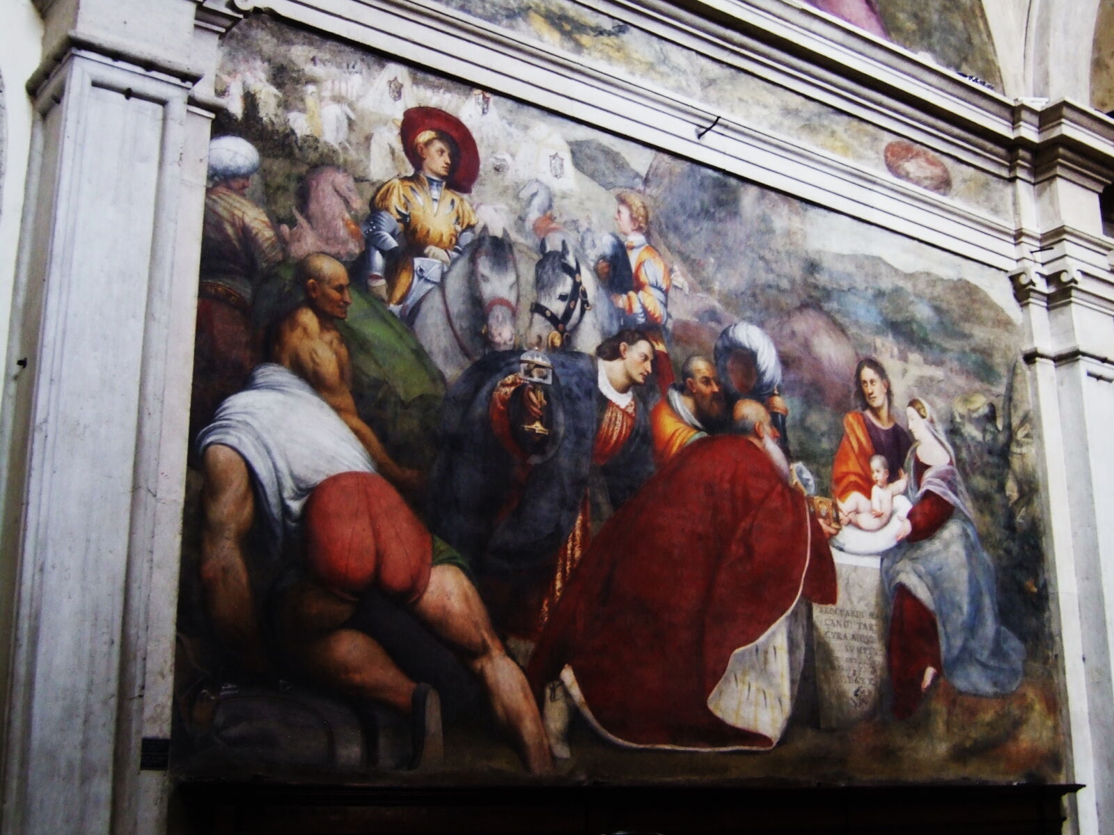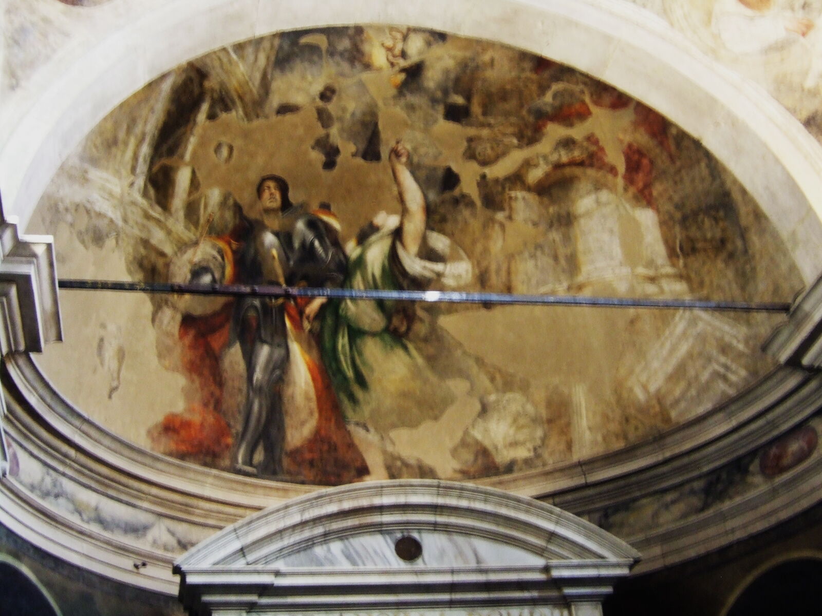 回廊の壁のフレスコ画断片
