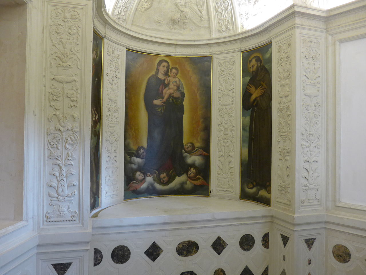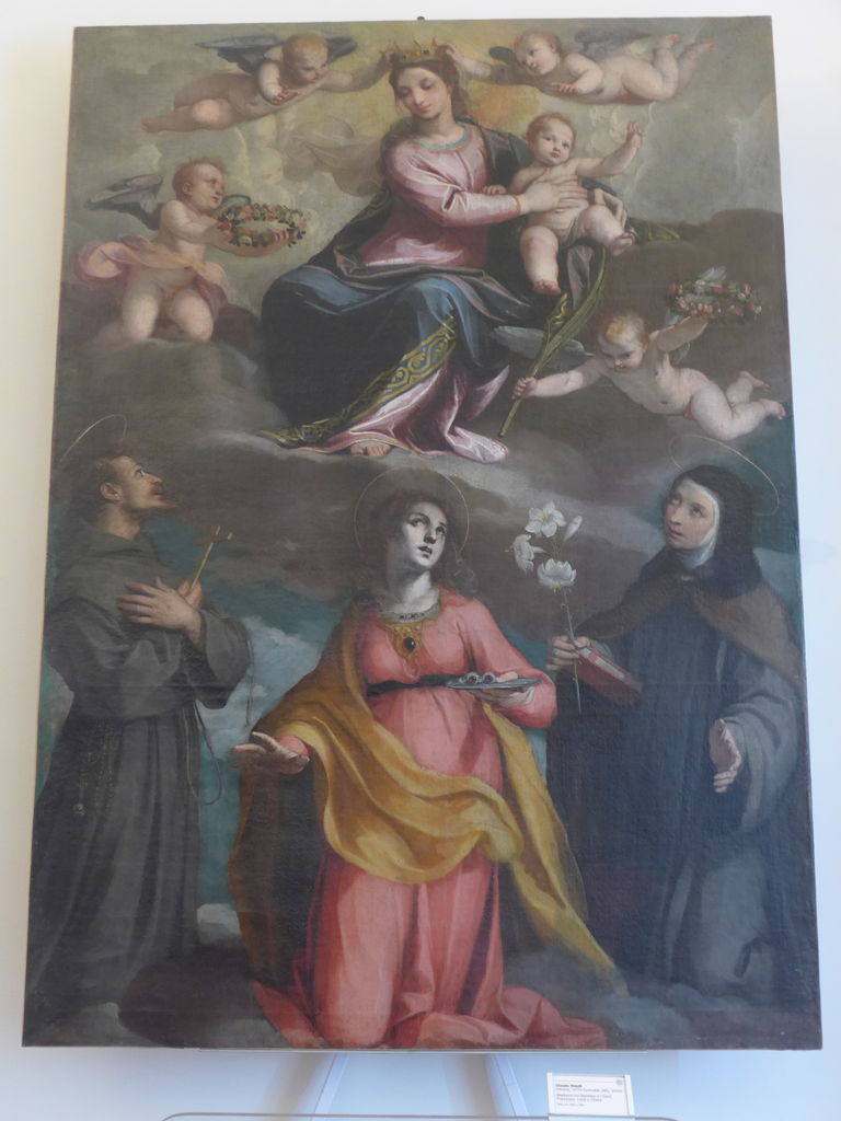 クラウディオ・リドルフォの「天上の聖母子と聖フランチェスコと聖ルチアと聖キアーラ」