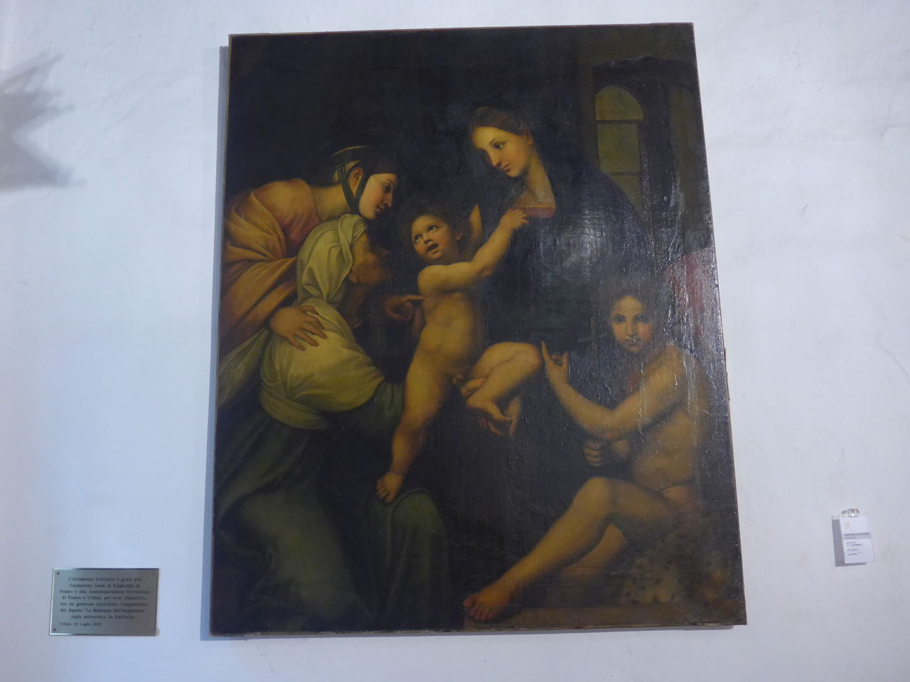 ラファエロの父ジョヴァンニ・サンティはウルビーノ公に仕える宮廷画家でしたが、1460年に、この建物に住むようになり、1483年4月6日に息子ラファエロがこの建物で誕生しました。
